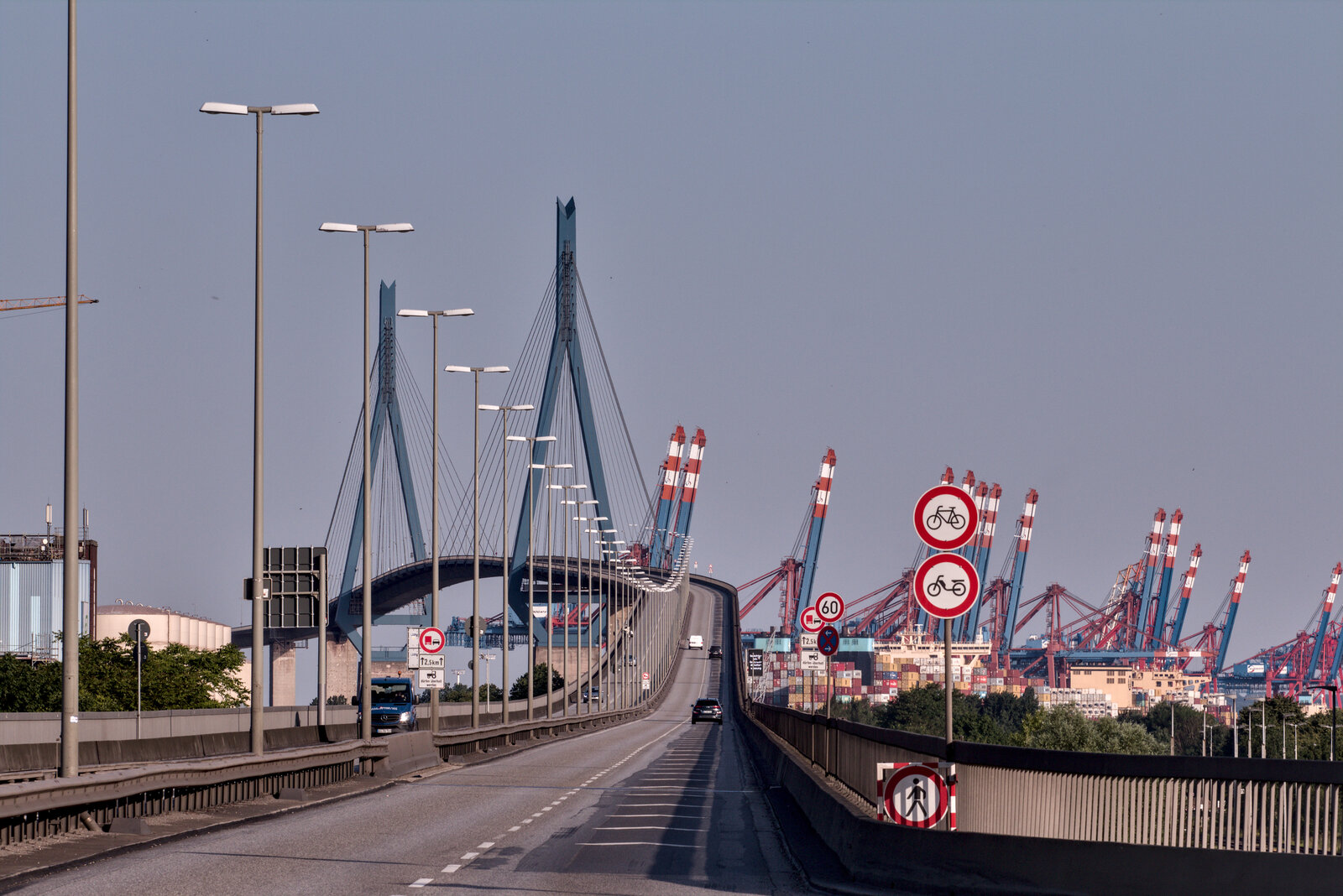 Die Köhlbrandbrücke mit Blick Richtung Altenwerder (2022 / Markus Daams / CC0)