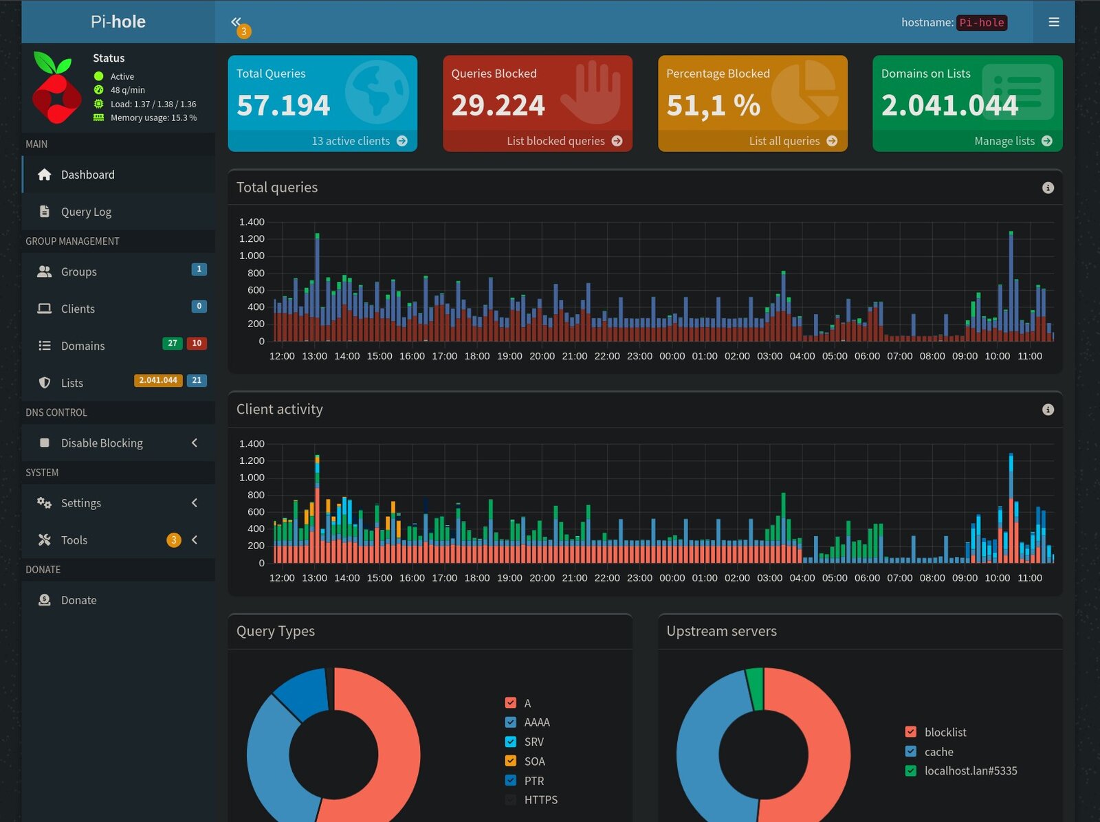 Das Dashboard vom Pi-Hole (Screenshot: Markus Daams / 2025)