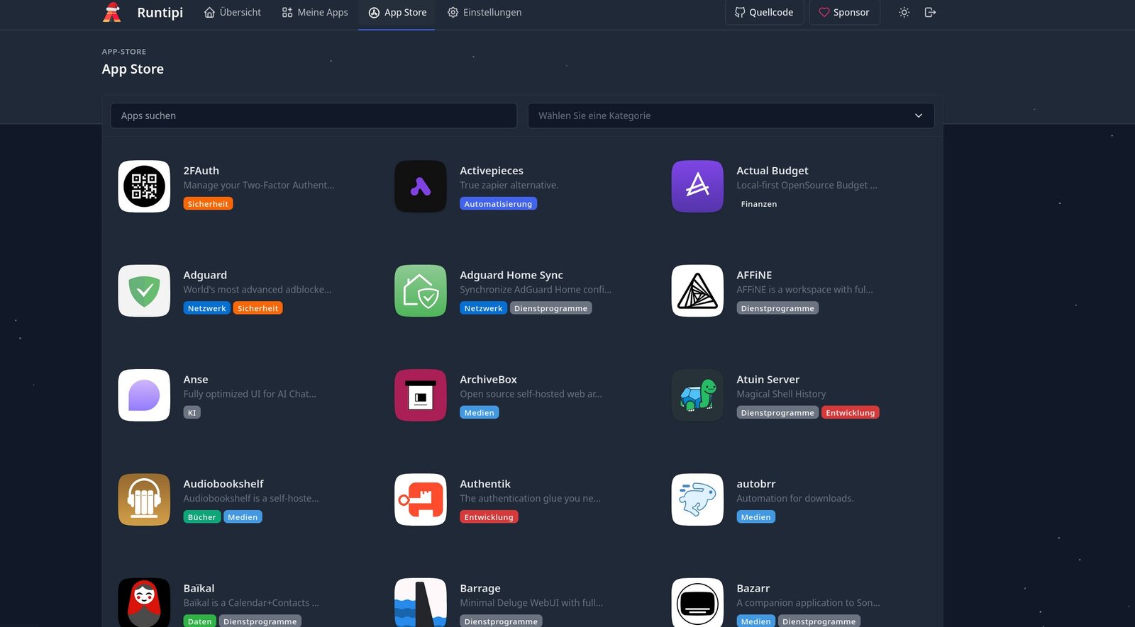 Der Runtipi App Store ist eine echte Fundgrube an tollen Apps (Screenshot: Markus Daams / 2025)