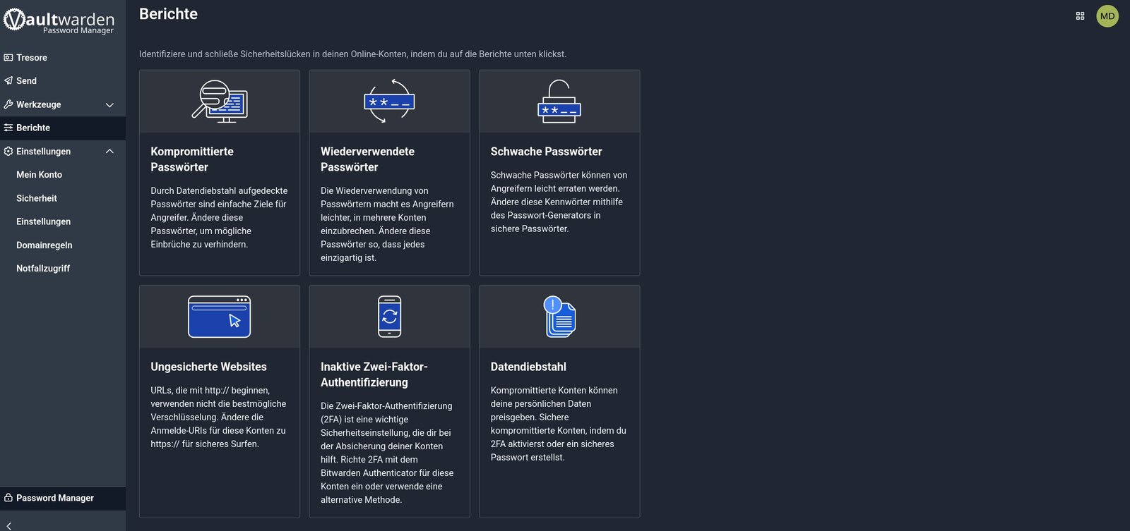Vaultwarden ist ein sehr mächtiger Passwortmanager zum selbst hosten (Screenshot: Markus Daams / 2025)