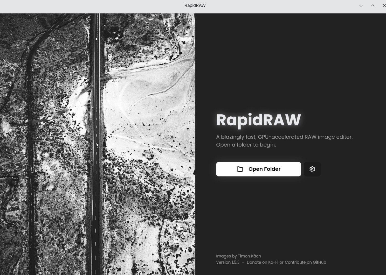 RapidRAW - Startfenster (Screenshot: Markus Daams / 2026)